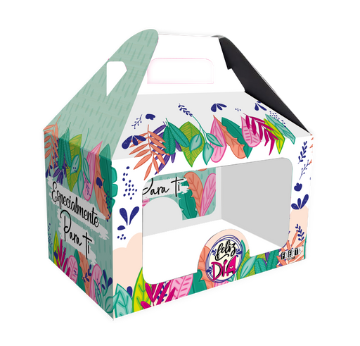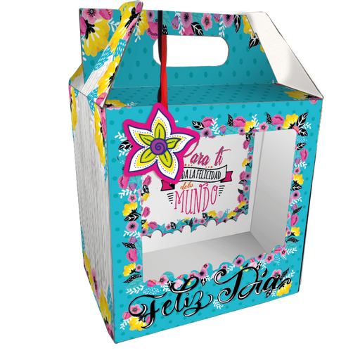 Caja Feliz Mediana Feliz Dia Flores x 1 Unidad REF: CFM-04 Fabricada encartulina calibre 18 Dimensiones: 20.5cm de alto x 19.5 cm de largo x 14 cm...