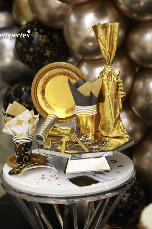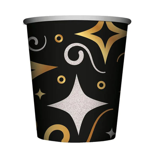 Vaso 9 Oz Feliz Cumpleaños Dorado Negro X 8 Unidades Sempertex