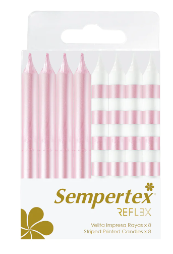 Velita Rayas Metalizadas Blanco Rosado X 8 Unidades Sempertex