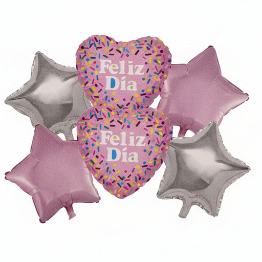 Precio original $16.800,00Precio actual $11.900,00Bouquet de Globos Corazones y Estrellas Feliz Dia X 5 Piezas Festella