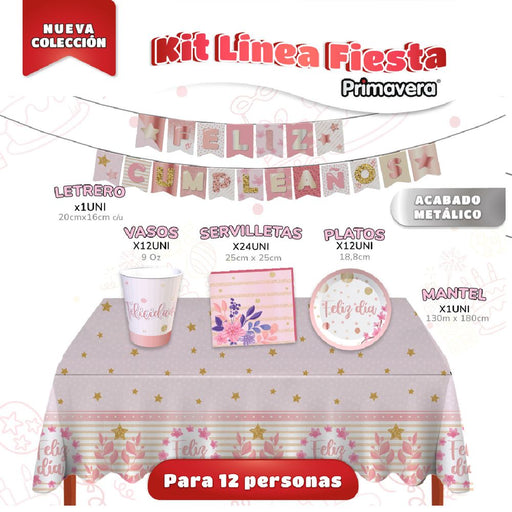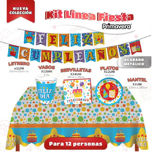 Espectacular kit para decorar tu fiesta marca con implementos marca PrimaveraEste kit consta de:- 12 Vasos de 9 Oz- 12 Platos de 18 Cm- 24 Serville...
