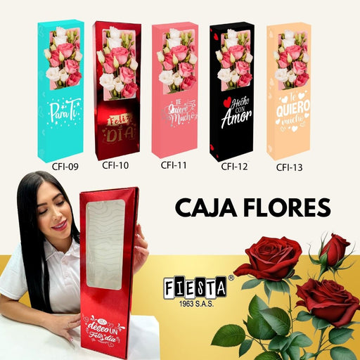 Fiesta 1963Caja Feliz Pequeña Acetato Para Ti Flores x 1 Unidad REF: CFPA-36 Fabricada en cartulina calibre 18 Dimensiones: 12 cm de alto x 20 cm de largo x ...