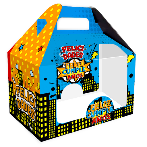 Fiesta 1963Caja Feliz Pequeña Acetato FelizCumpleaños Comic x 1 Unidad REF: CFPA-03 Fabricada encartulina calibre 18 Y ventana en Acetato Dimensiones: 12 cm d...