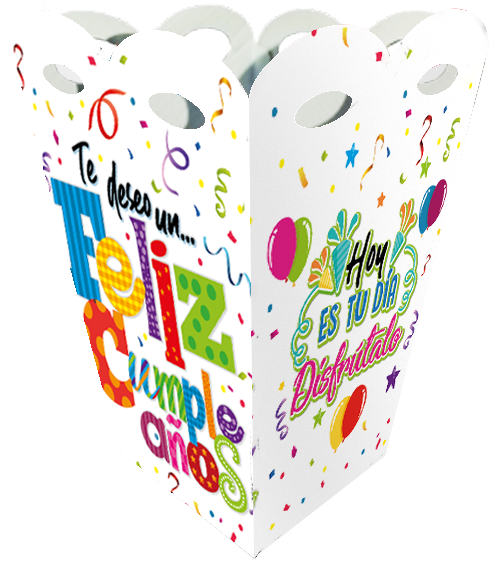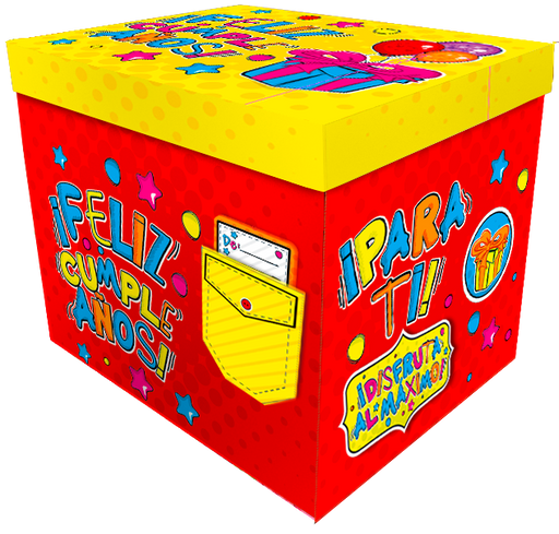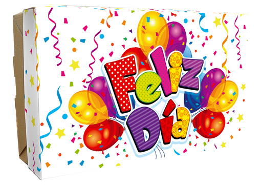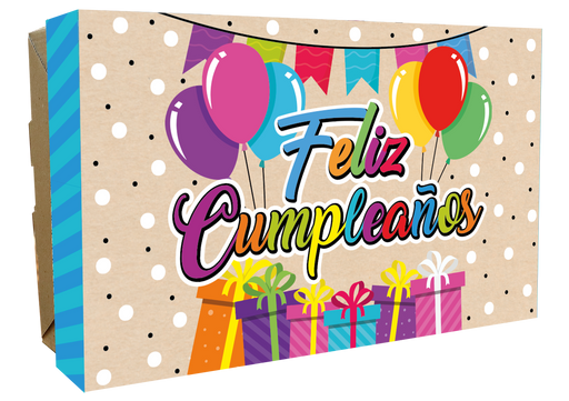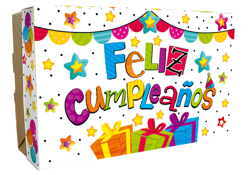Fiesta 1963Caja Obsequio Grande Feliz Cumpleaños Feston x 1 Unidad REF: COG-60 Fabricada en cartulina calibre 18 y base en material Microcorrugado Dimensiones...
