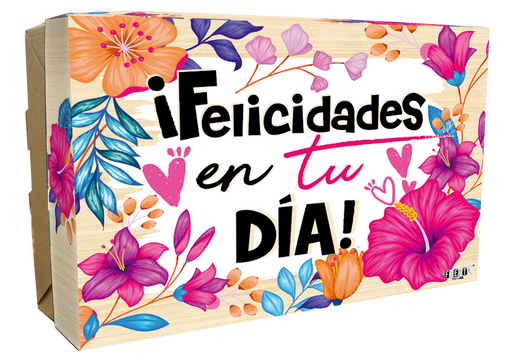 Fiesta 1963Caja Obsequio Grandes Felicidades En Tu Dia Flores x 1 Unidad REF: COG-69 Fabricada en cartulina calibre 18 y base en material Microcorrugado Dimen...