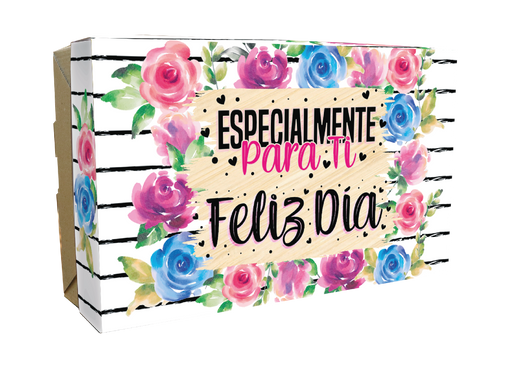 Fiesta 1963Caja Obsequio Grande Feliz Dia Flores x 1 Unidad REF: COG-77 Fabricada en cartulina calibre 18 y base en material Microcorrugado Dimensiones: 12 cm...