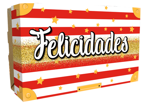 Fiesta 1963Caja Obsequio Grande Felicidades Rayas x 1 Unidad REF: COG-94 Fabricada en cartulina calibre 18 y base en material Microcorrugado Dimensiones: 12 c...