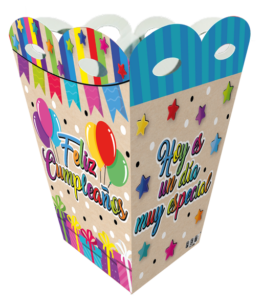 Fiesta 1963Caja Cubo Mediana Feliz Cumpleaños x 1 unidad REF: CUJ-12 Fabricada en cartulina calibre 18 Dimensiones: 25 cm de alto x 25 cm de largo x 25 cm de...