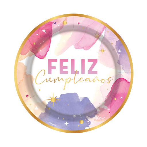Precio original $10.500,00Precio actual $8.500,00| /Plato 7" Metalizado Fiesta Acuarela X 8 Unidades Sempertex
