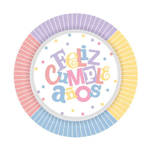 SempertexPlato 7" Feliz Cumpleaños Festival Pastel x8 Unidades Sempertex
