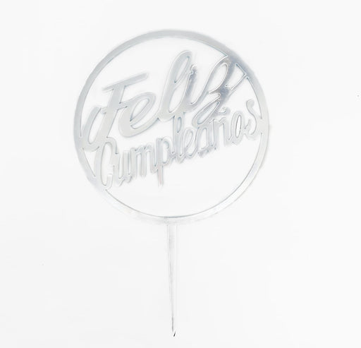 FestellaTopper Para Torta Feliz Cumpleaños Circulo Plata X 1 Unidad Festella
