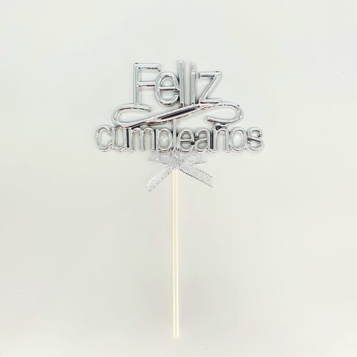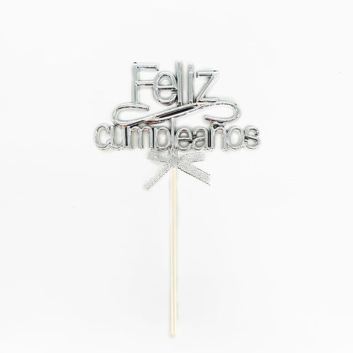 FestellaTopper Para Torta Feliz Cumpleaños Plata Moño X 1 Unidad Festella