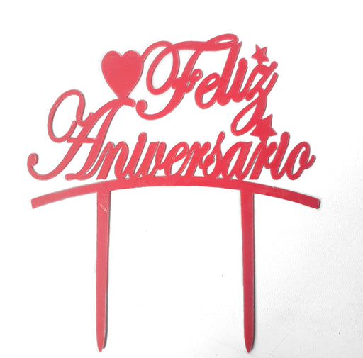 Precio original $5.400,00Precio actual $4.000,00| /Topper para Torta Feliz Aniversario Rojo X Unidad