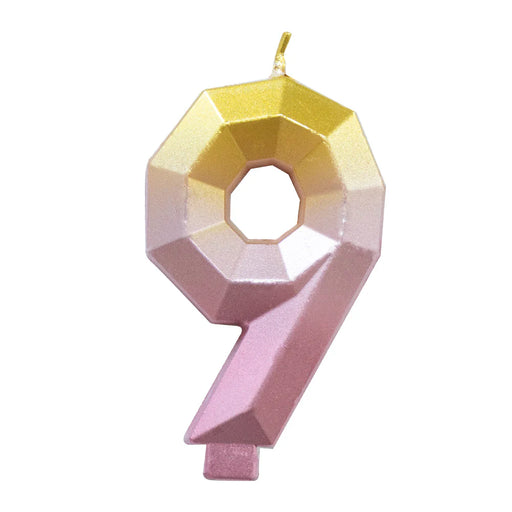 Vela Numerica Degradada Rosa - Dorado # 9 Sempertex x 1 Unidad