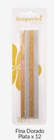 Precio original $6.500,00Precio actual $4.800,00| /Velita Fina Dorado Plata X 12 Unidades Sempertex