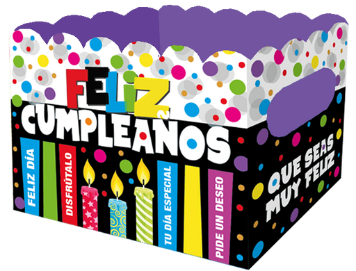 Caja Ancheta Grande Feliz Cumpleaños x 1 unidad REF: CA-191RPC Fabricada en cartulina calibre 18  Dimensiones: 16,3 cm de alto x 20 cm de largo x 1...