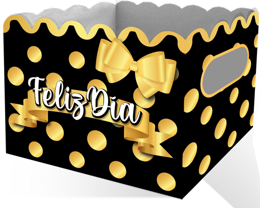 Caja Ancheta Grande Feliz Dia Punto Negro x 1 unidad REF: CA-198RPC Fabricada en cartulina calibre 18  Dimensiones: 16,3 cm de alto x 20 cm de larg...