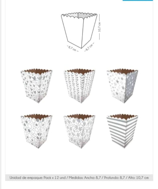 Caja Ancheta Amor Plateada 8.7 x 8.7 x 10.7 cm Paquete x 12 Unidades Surtidas