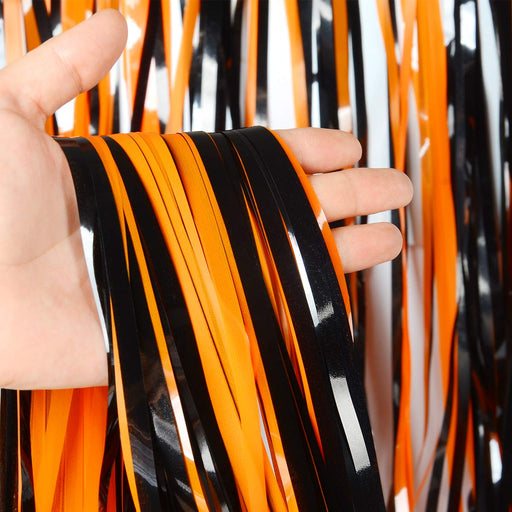CourtainCortina De Fiesta Metalica Naranja - Negro 2 MT X 1MT Linea Economica