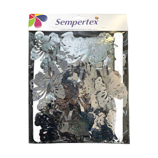 SempertexCortina De Fiesta Metalizada Mariposas Plateada 2 MT X 1 MT Sempertex DESCRIPCIÓN Unidades por Empaque 1 Material PAPEL METALIZADO Medi...