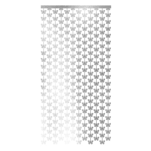 Precio original $18.500,00Precio actual $14.000,00| /Cortina De Fiesta Metalizada Mariposas Plateada 2 MT X 1 MT Sempertex