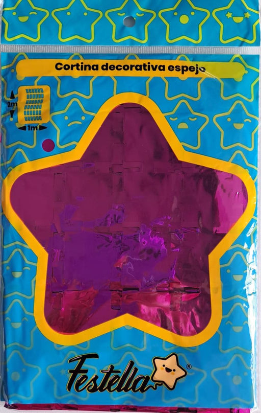 Precio original $9.500,00Precio actual $6.500,00| /Cortina de Fiesta Espejo Cuadro Pequeño 2 x 1 m Festella Fucsia