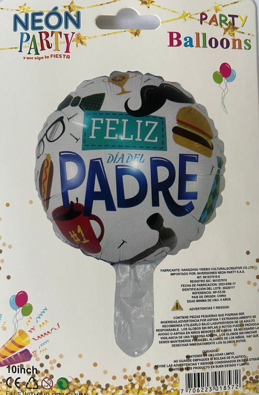 Neon PartyGlobo Metalizado Redondo Feliz Dia del Padre #1 10"