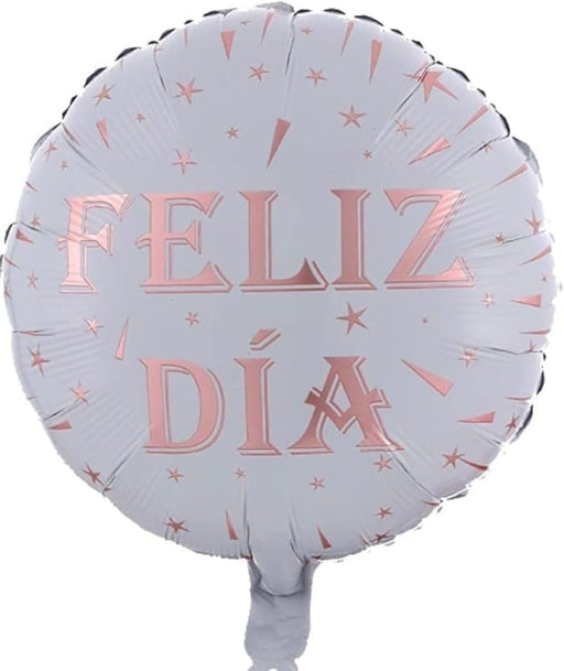 Sc & BalloonGlobo Metalizado Redondo Feliz Dia Blanco Dorado Rosa 18"