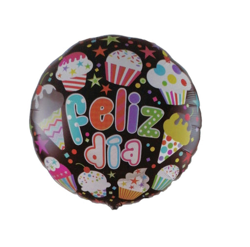 Precio original $2.800,00Precio actual $1.800,00| /Globo Metalizado Redondo Feliz Dia Cupcakes 18"