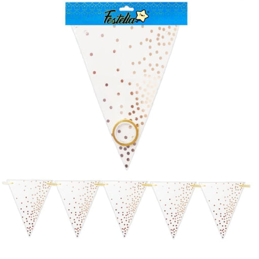 FestellaBanderin Metalizado Rosado Puntos Dorados Festella