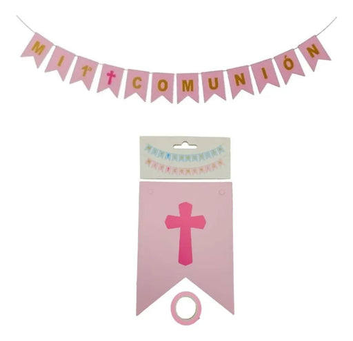 Precio original $8.500,00Precio actual $6.500,00| /Feston Mi Primera Comunion Pequeño Rosado Dorado