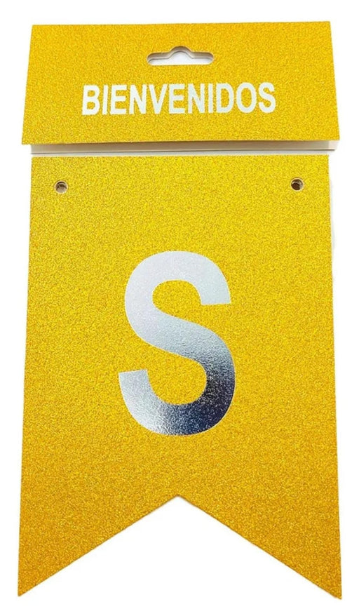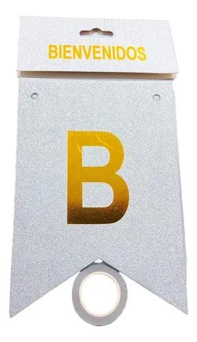 Precio original $8.500,00Precio actual $6.500,00| /Feston Bienvenidos Escarchado Pequeño Dorado Plata
