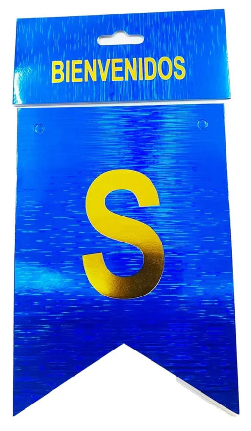 Precio original $8.500,00Precio actual $6.500,00| /Feston Bienvenidos Escarchado Pequeño Azul Dorado