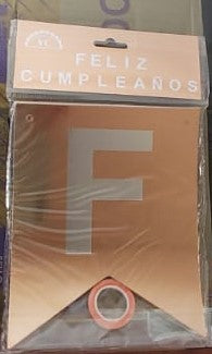 Precio original $6.500,00Precio actual $5.000,00| /Banderin Metalizado Dorado Rosa Festella