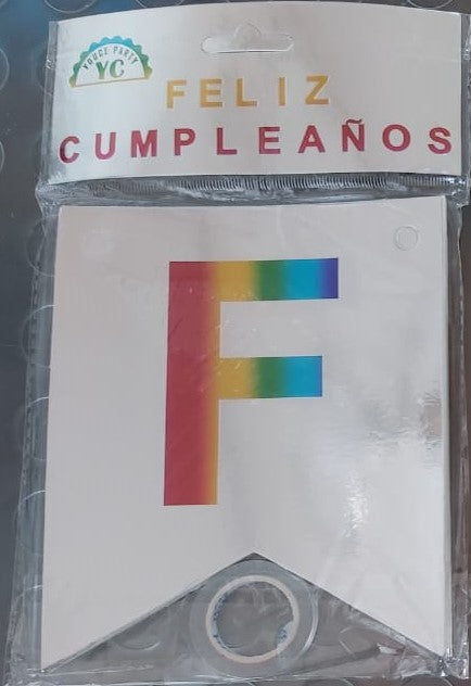 Precio original $8.500,00Precio actual $5.500,00| /Feston de Cumpleaños Pequeño Arcoiris Plateado