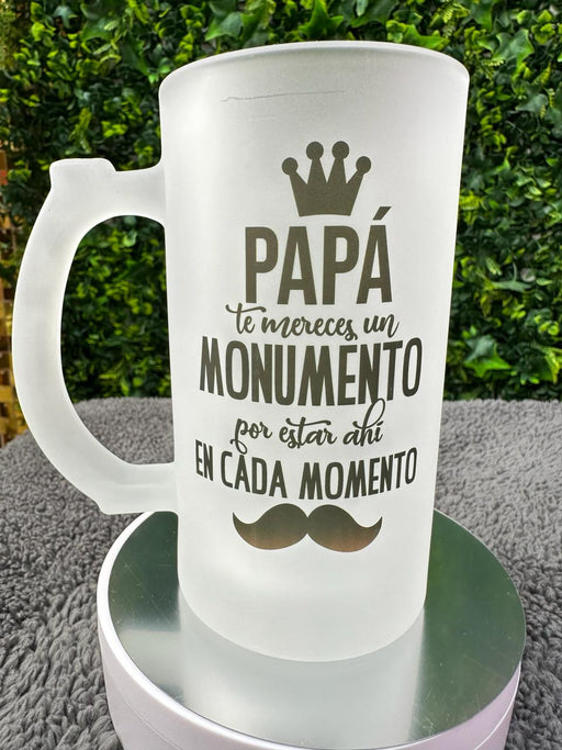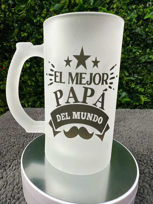 Mug CompanyJarro Cervecero Opalizado Mensaje Padre Ref. 1 x 1 Unidad Características del MugTamaño: Alto 15cm x Diámetro 8cmCapacidad: 15ozMaterial: VidrioCol...