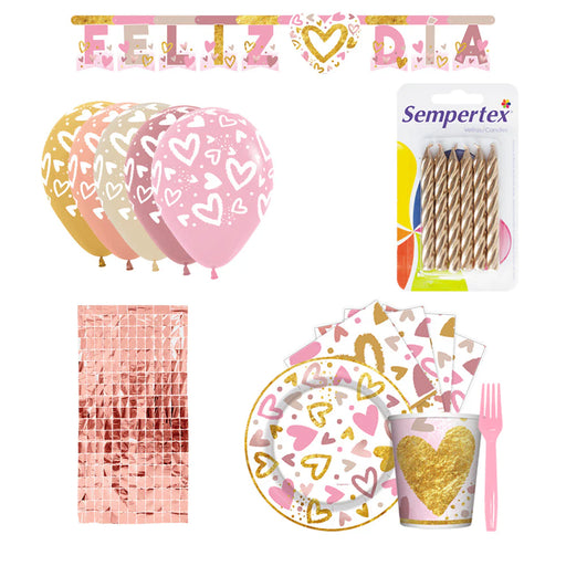 Precio original $78.900,00Precio actual $56.000,00| /Kit De Fiesta Feliz Dia Corazones Brillantes Marca Sempertex