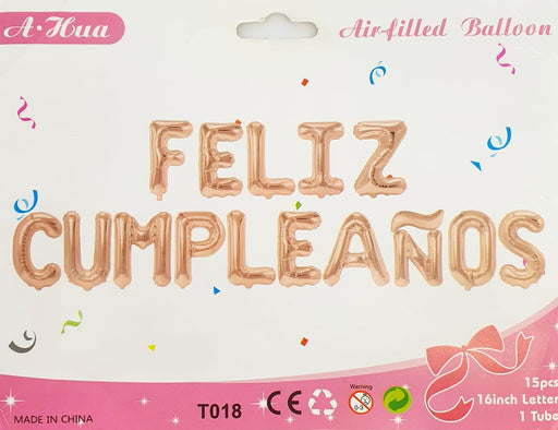 Precio original $12.500,00Precio actual $9.000,00| /Globo letrero Feliz Cumple 16" x 11 Piezas Dorado Rosa