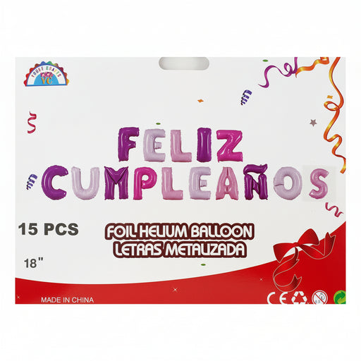 Sc & BalloonGlobo Letrero Metalizado Feliz Cumpleaños Lila Multicolor X 15 Piezas