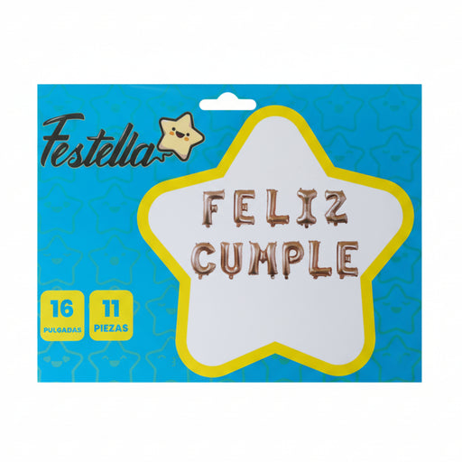 Precio original $12.500,00Precio actual $9.000,00| /Globo letrero Feliz Cumple 16" x 11 Piezas Dorado