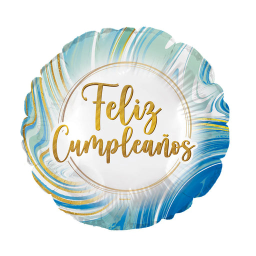 Globo Foil Feliz Cumpleaños Marmoleado Acqua 18" x 1 Unidad Sempertex