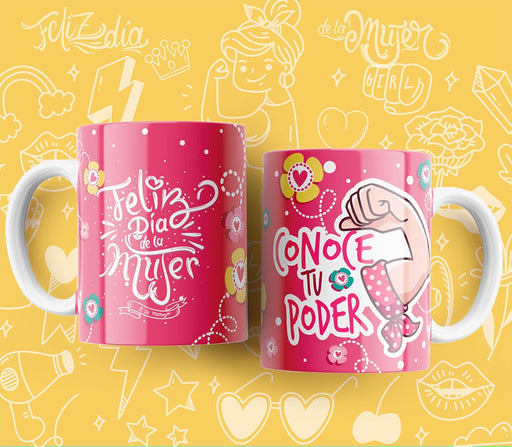 Mug CompanyMug Premium Día de la Mujer 11 Oz Ref. 8 x 1 Unidad Taza en Cerámica Blanca en exterior y Rosado en interior y oreja. Sublimada con diseño a elecc...