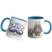 Taza en Ceramica Blanca (Interior y Manija en color Azul) Sublimada con diseño a eleccion. Apto para contacto con alimentos, Dimensiones: 8 cm de Diametro x 9.5 cm de alto/ Capacidad 11 Onzas