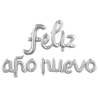 FestellaLetrero Feliz Año Nuevo Plateado Cursivo 3 Piezas Festella