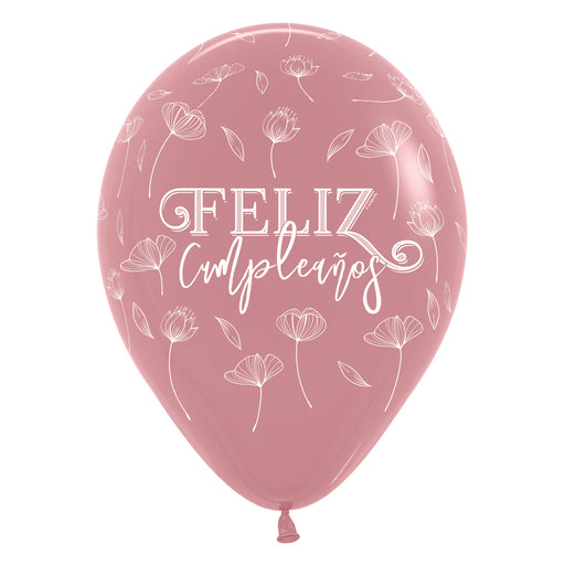Precio original $11.500,00Precio actual $9.500,00| /Globo Feliz Cumpleaños Flores Palo De Rosa R12 x 12 Unidades Sempertex