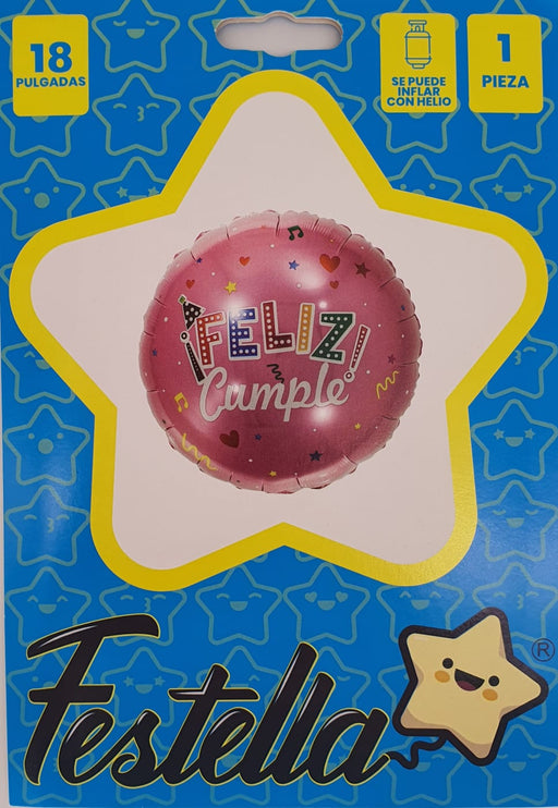 FestellaGlobo Metalizado Redondo Feliz Cumple Rosado 18" Festella