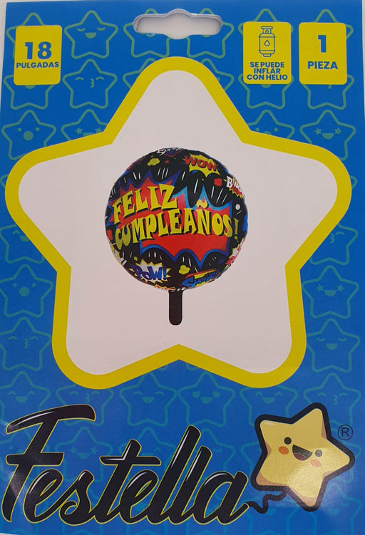 FestellaGlobo Metalizado Redondo Feliz Cumpleaños Comic 18" Festella