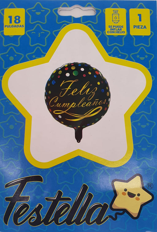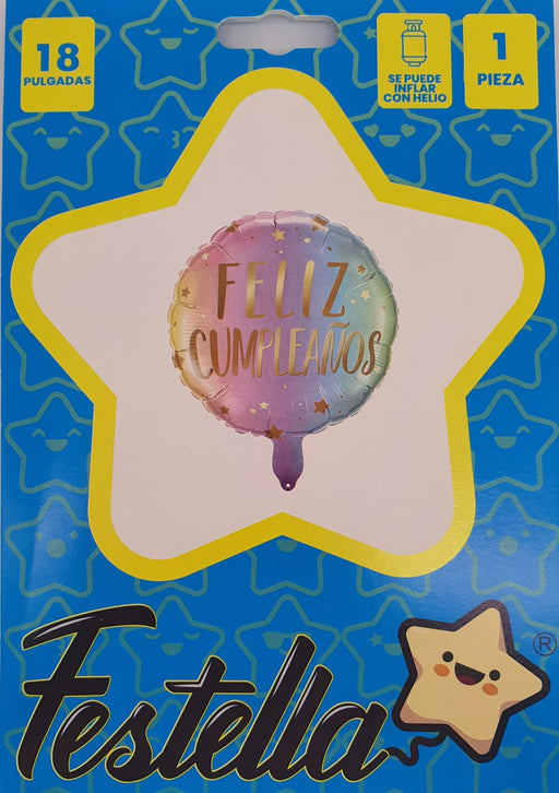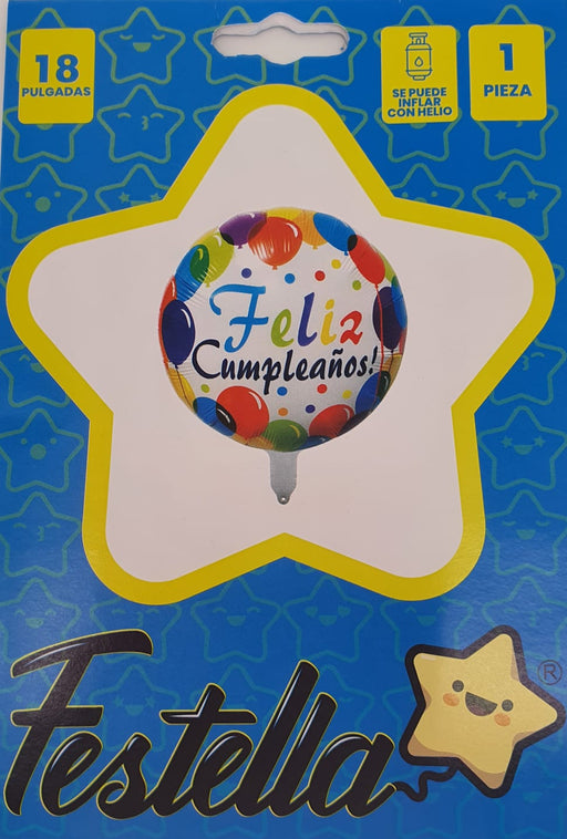 FestellaGlobo Metalizado Redondo Feliz Cumpleaños Globos Multicolor 18" Festella