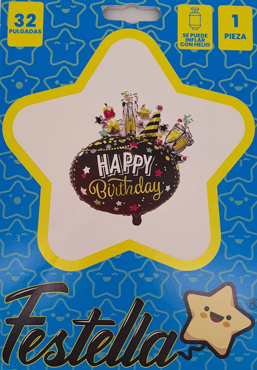 Precio original $5.650,00Precio actual $3.500,00| /Globo Metalizado Happy Birthday Fiesta en Relieve 32" Festella