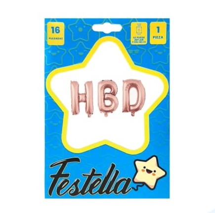 Precio original $7.800,00Precio actual $5.800,00| /Globo Metalizado HBD 16" Festella Dorado Rosa 16" X 1 Unidad Festella